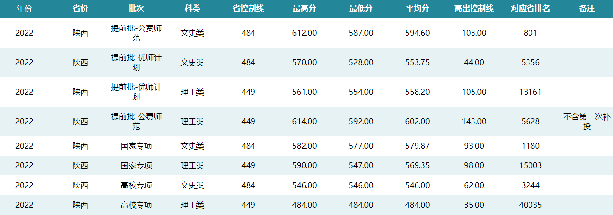 华中师范大学2022年陕西招生录取分数