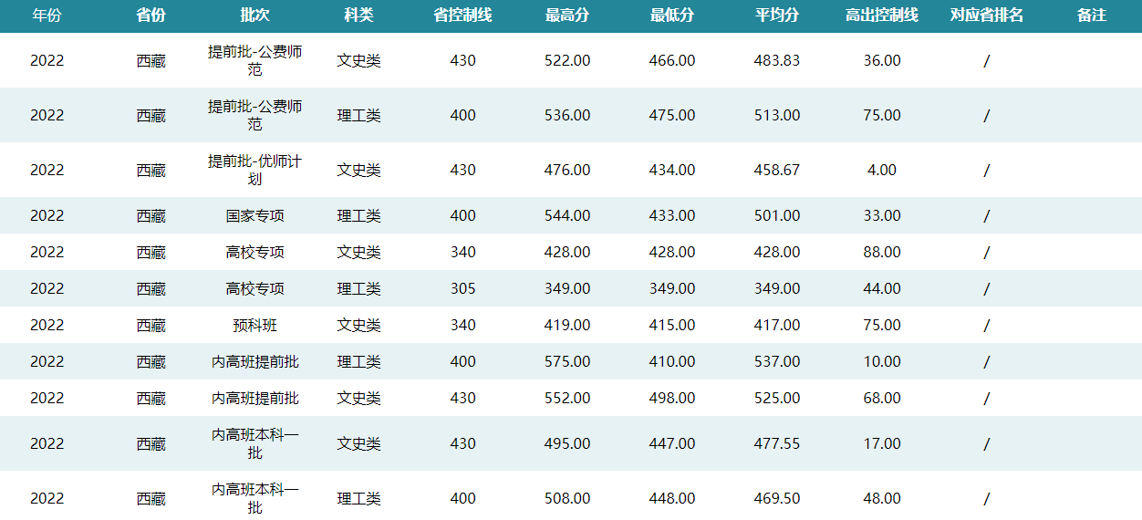 华中师范大学2022年西藏招生录取分数