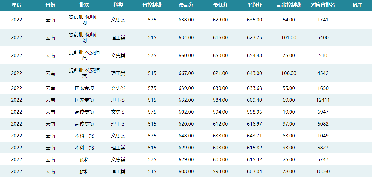 华中师范大学2022年云南招生录取分数