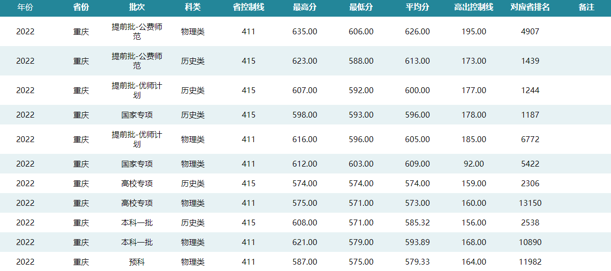 华中师范大学2022年重庆招生录取分数