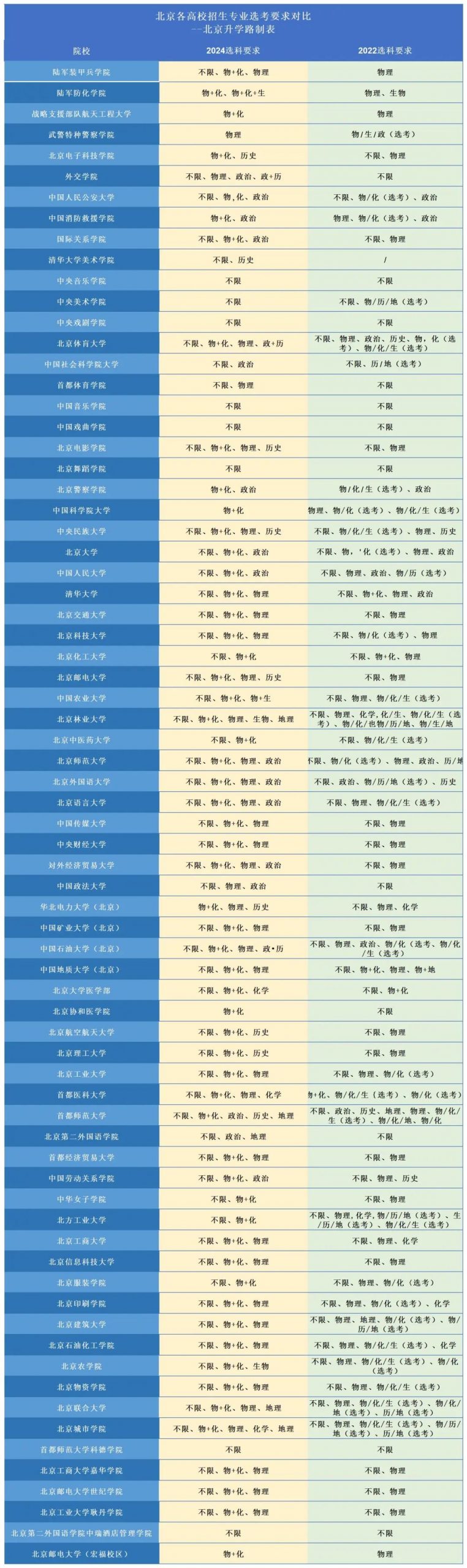 2023/2024/2025北京高考依旧沿用3+3模式!2023选科要求相比2022年暂无变动,考生可参考2022选科情况来定位院校和专业。2024年之后科要求产生较大变化,北京admw360教研组整理了一下北京高校2024和2022年的选科要求对比,一起来看一下吧~