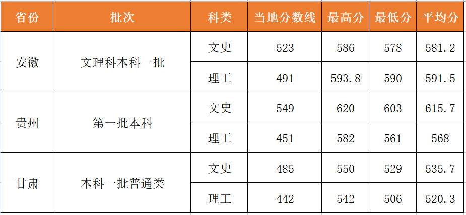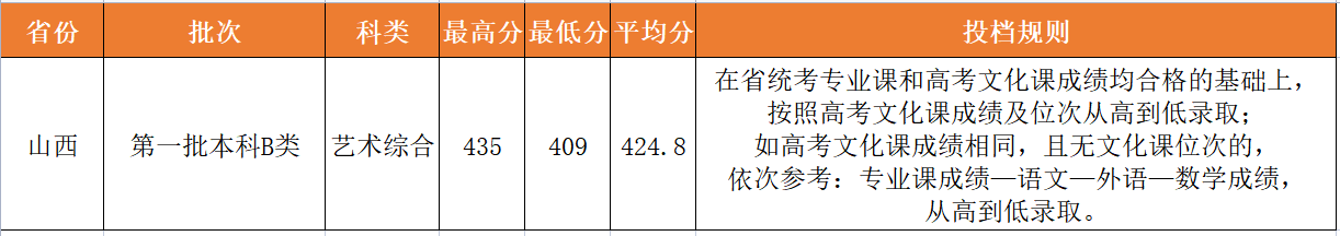 截止7月23日,我校在山西的艺术类录取结束,在安徽、贵州和甘肃的本科一批次录取结束,具体如下: