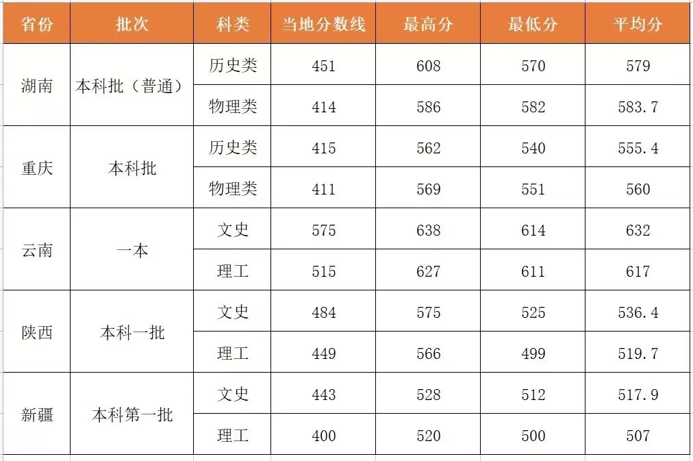截止7月27日,我校在湖南、重庆、云南、陕西和新疆的本科一批次录取结束,具体如下: