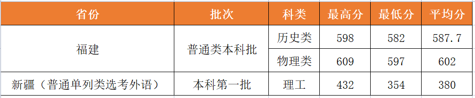 截止8月2日,我校在福建的普通类本科批和新疆的普通单列类录取结束,具体如下: