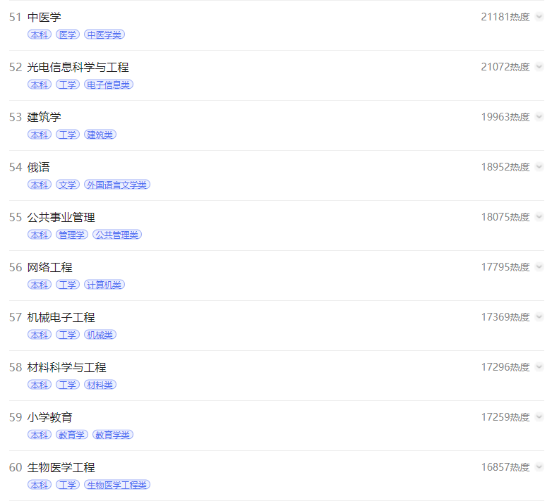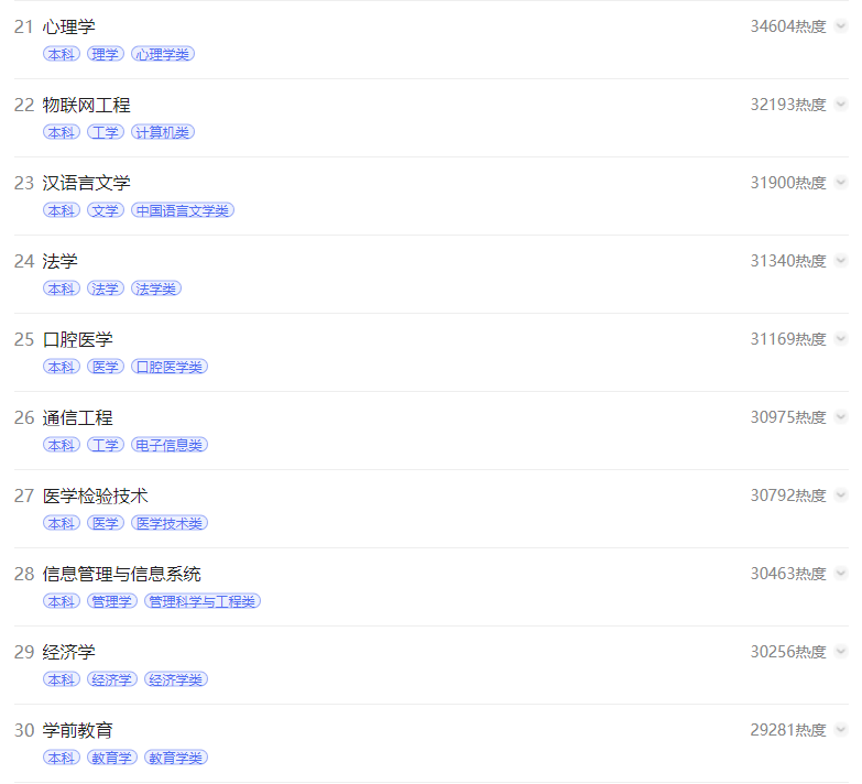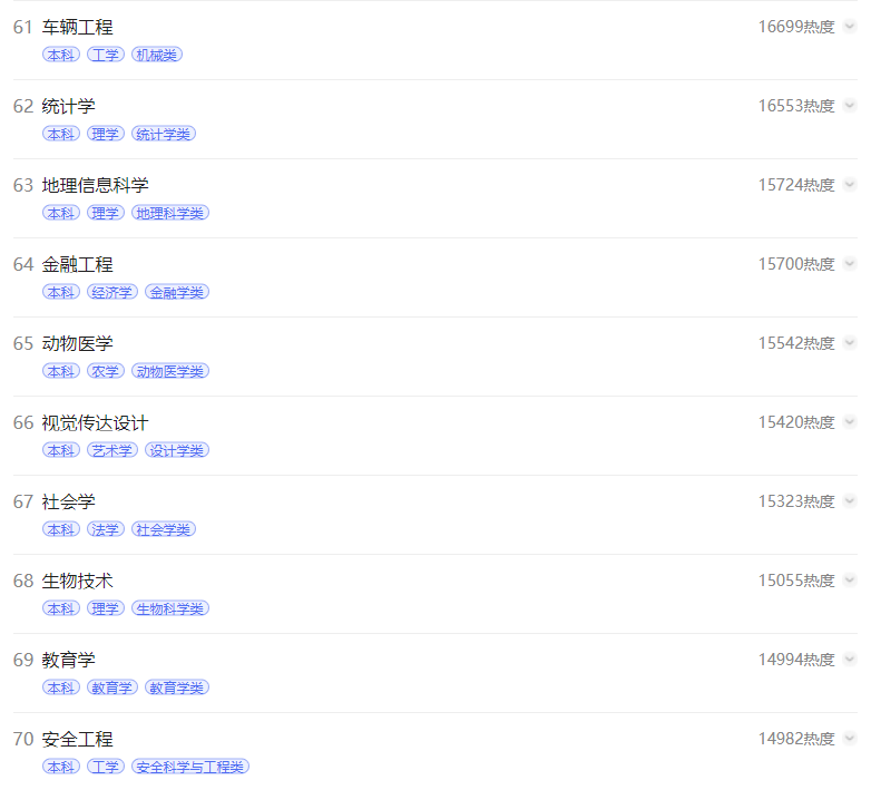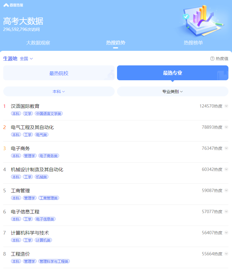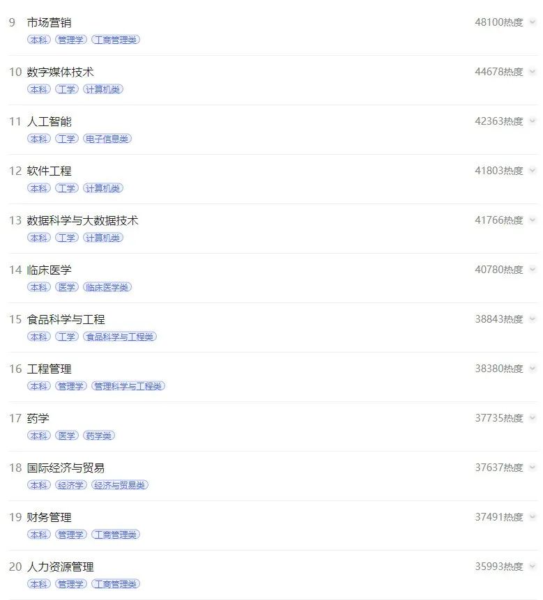 3.电子商务专业位于热榜第三略在意料之外。电子商务作为管理学门类下的一级学科,为2000年的新增专业,推测可能与网络营销、电商行业、直播带货的蓬勃发展息息相关。