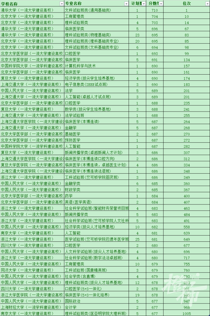 注意:全省前一千名的考生中,很多因为保送或者强基计划等原因,录取信息没有体现在投档线表格上。