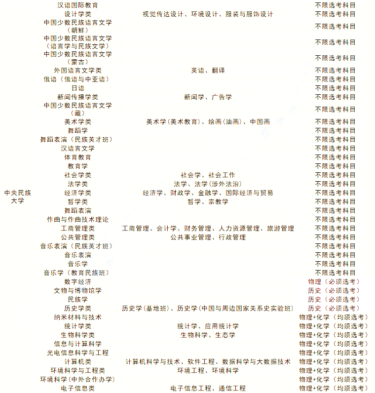 北京admw360教研组为大家整理了2024/2025中央民族大学各专业选科要求,新高一和新高二考生和家长需要重点关注!