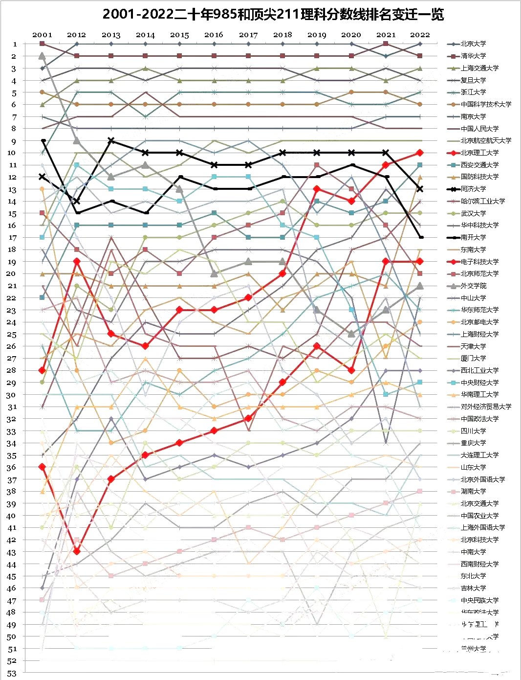 今天北京admw360教研组为大家整理了近10年国内985和顶尖211理科分数线排名变迁一览!一起来看: