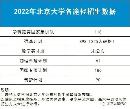 除以上招生方式外,北京大学也有外语类保送生、高水平艺术团、高水平运动队等招生方式。