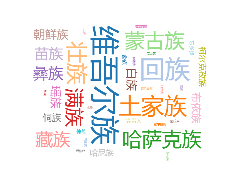 其中人数最多的少数民族是维吾尔族,一共有37名同学,布朗族、俄罗斯族、鄂伦春族、高山族、仡佬族等,均只有1名同学。