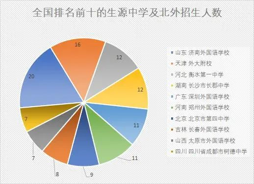 16名同学可以在北外找到天津外大附校的校友,长沙市长郡中学、衡水第一中学在北外招收人数上并列第三,均为12名,深圳外国语学校与郑州外国语学校紧随其后,同为11名同学。