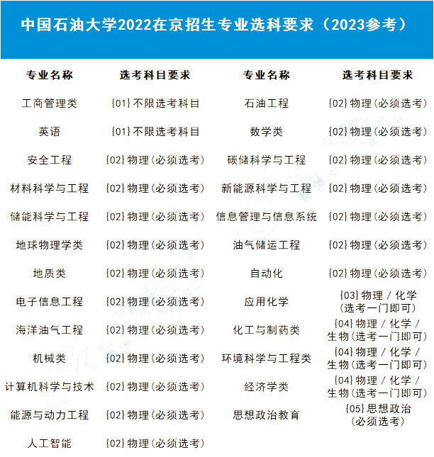 表格数据仅展示了本科普通批在京招生专业分数线,数据来源于中国石油大学本科招生网。