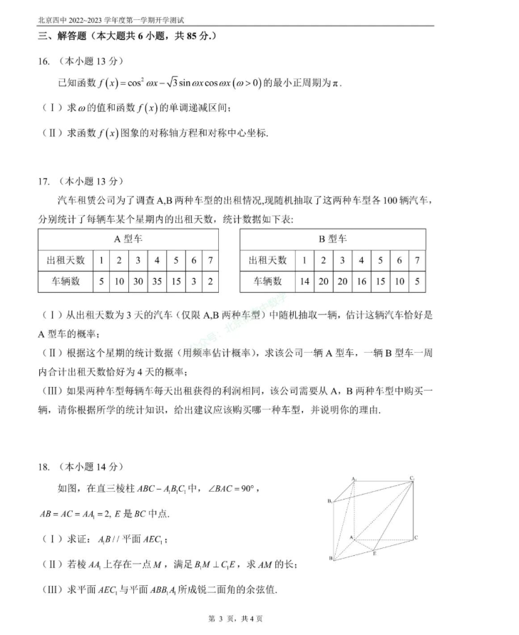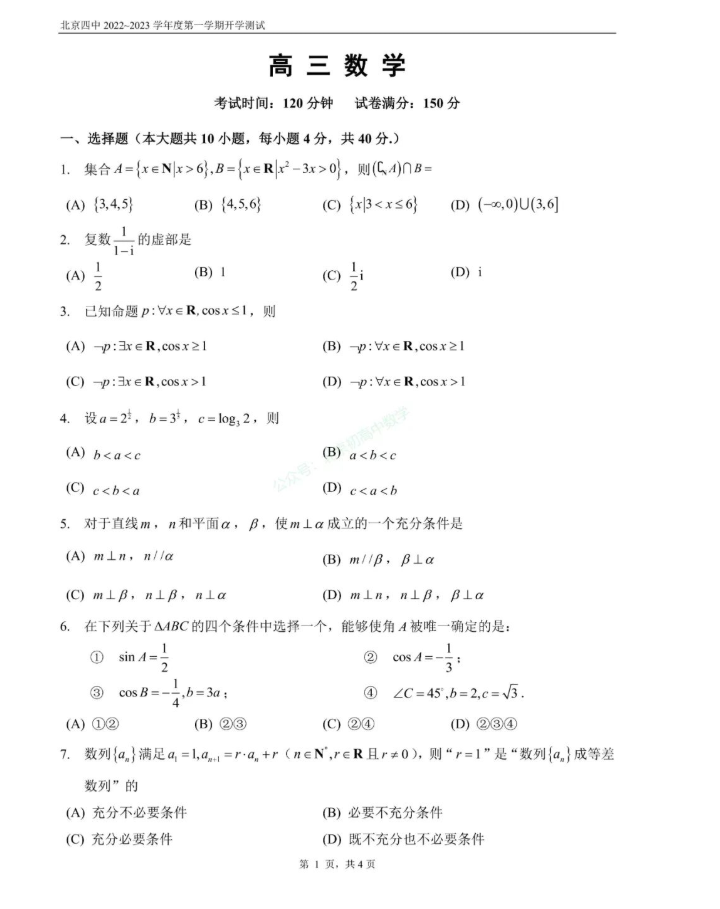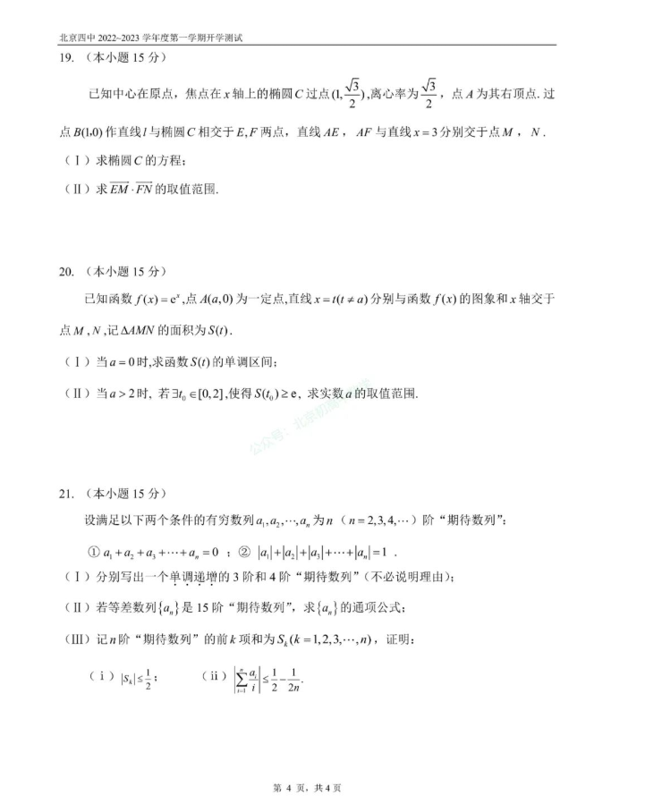 2022年9月北京四中高三开学测数学科目已结束,北京admw360教研组为大家整理了2022北京四中高三开学测数学试题,一起来看。