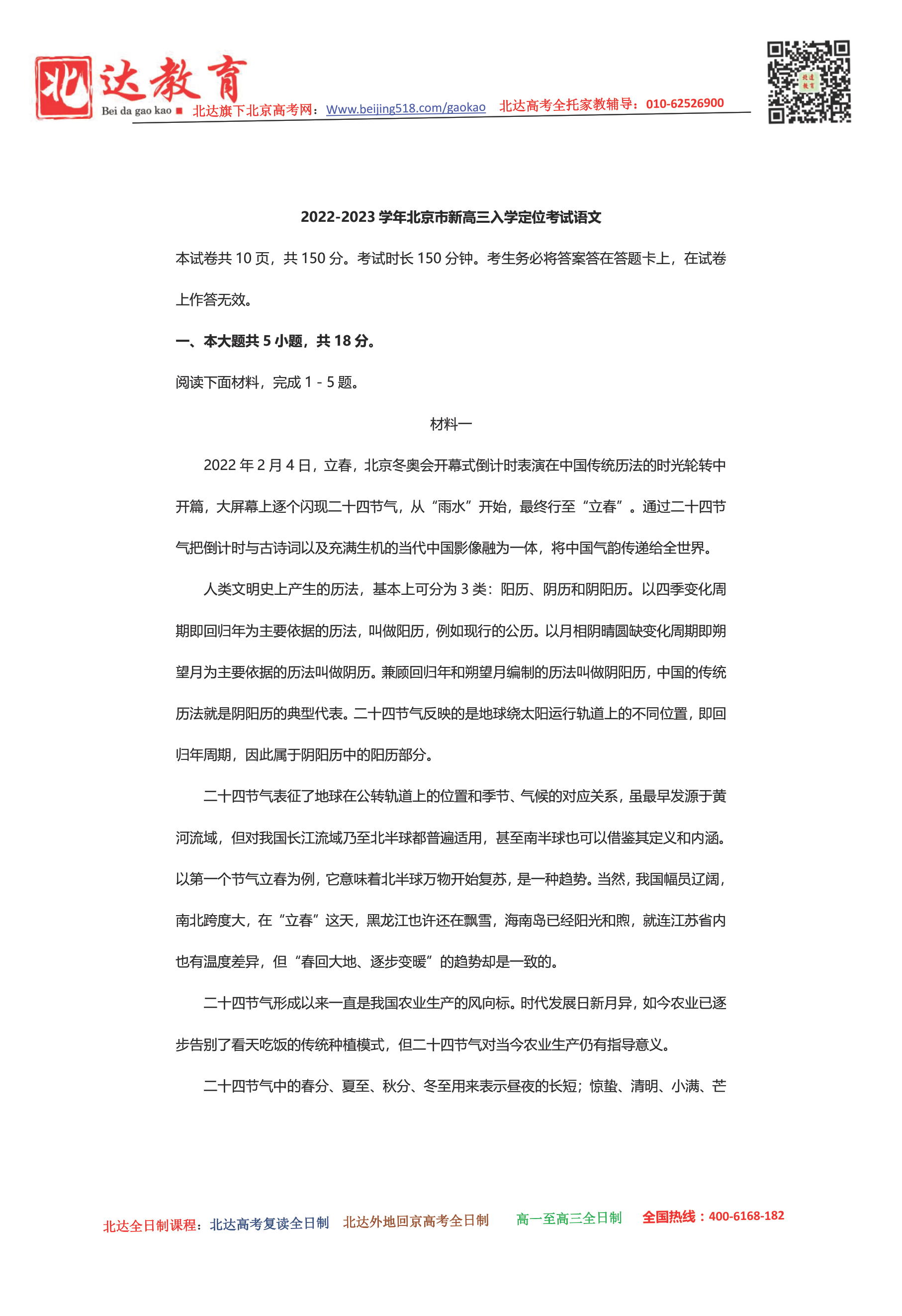 北京admw360教研组为大家整理了2023届北京新高三入学定位考语文试题及答案,一起来做做看吧。