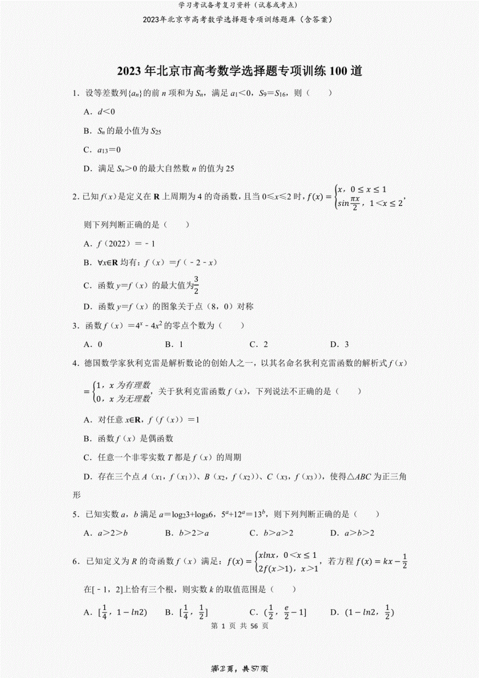 北京高考备考资料下载网入口>>>>>>>>>(点此进入)名校试题-–试卷解析—最新试题—考点汇总—知识点讲解