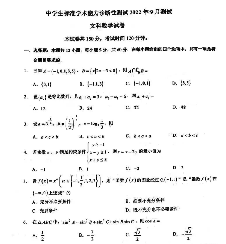 北京admw360教研组为大家整理了2022年9月清华大学中学生标准学术能力测试文科数学试题,一起来看: