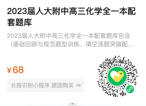 2023届人大附中高三化学全一本配套题库包含(基础回顾与规范题型训练、填空逐题突破配套题库、选择逐题突破配套题库)需要的同学点击下方小程序可直接加购: