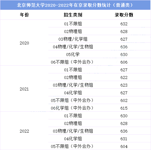 北京admw360教研组为大家整理了北京师范大学2020-2022年在京录取分数变化解析,一起来看: