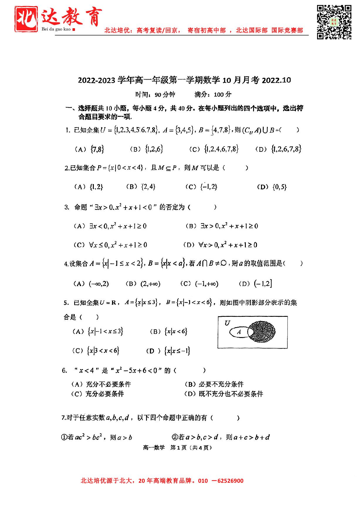 北京admw360教研组为大家整理了2022北京理工附中高一10月月考数学试题(无答案),分享给大家。
