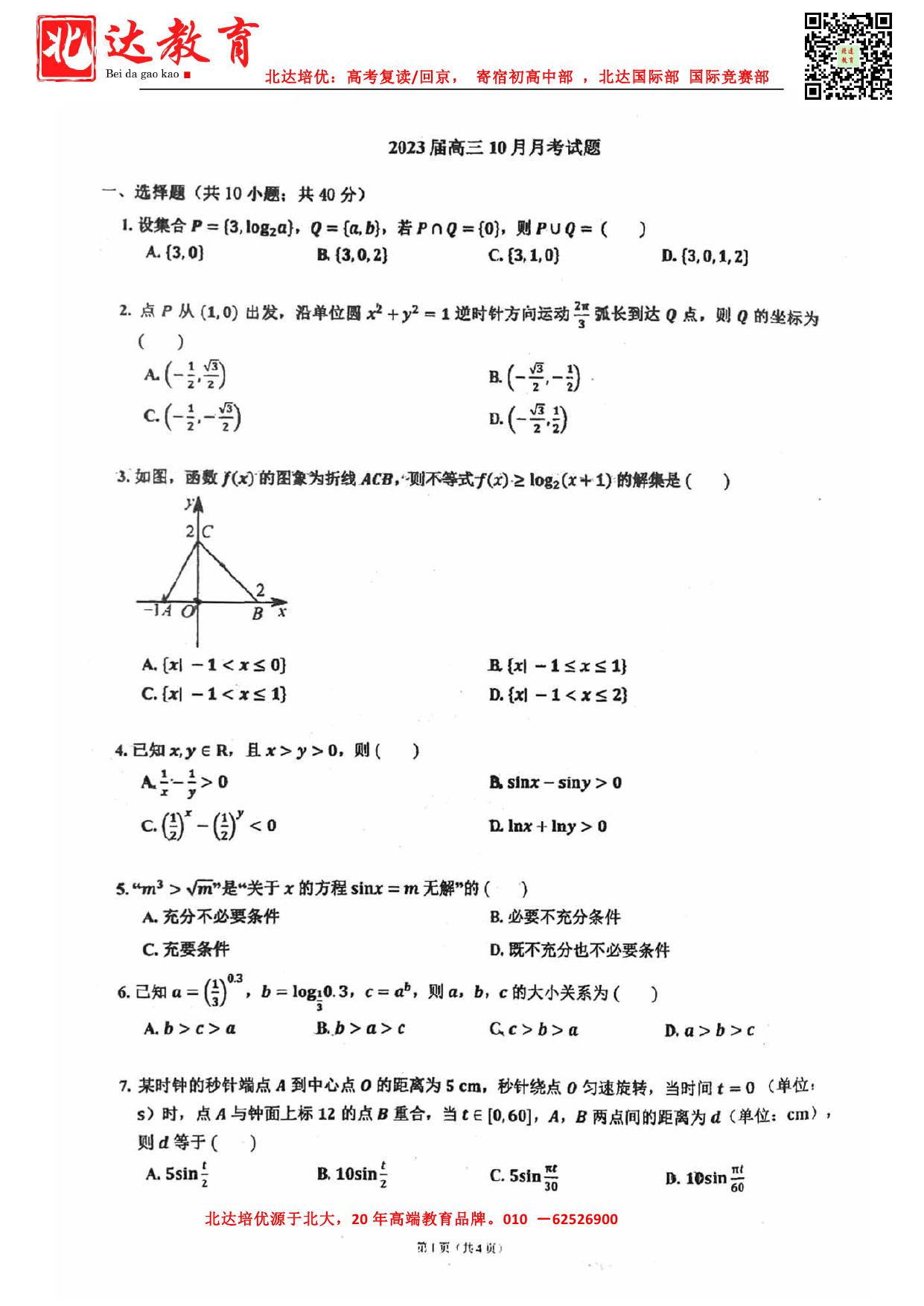 北京admw360教研组为大家整理了2022北京北师大二附中高三10月月考数学试题,分享给大家。