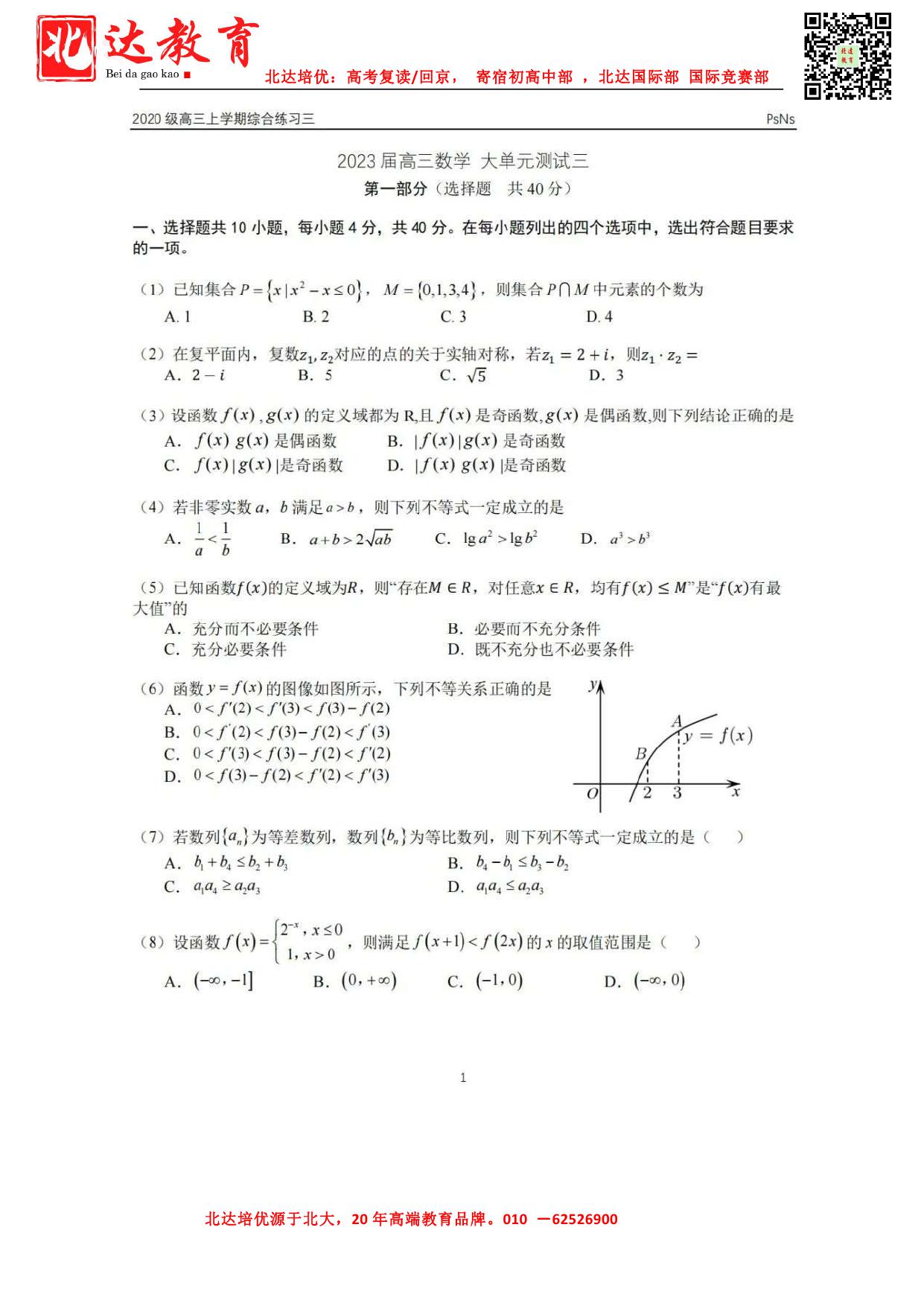 今天,北京admw360教研组为大家整理了2022北京师大附中高三第三次月考数学试题及答案,一起来看。
