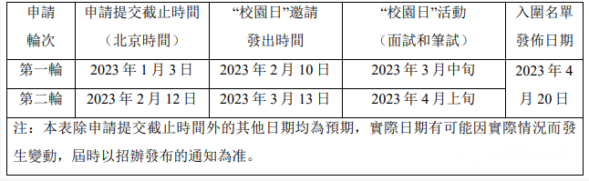 按照往年的招生流程,香港科技大学2023年招生入学申请预计于10月份开始。有意申请入学的学生必须在本校入学申请截止日前通过网上申请系统直接向香港科技大学提交入学申请。(以下是2022年入学申请日期及申请截止日期,仅供参考)