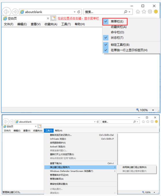方法一:打开IE浏览器,点击“菜单栏”-“工具”-“弹出窗口组织程序”,如下图: