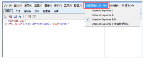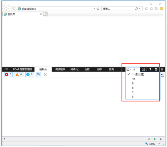 打开IE浏览器,点击“F12”键,会出现浏览器模式设置,要求此处设置的版本必须与浏览器实际版本一致。