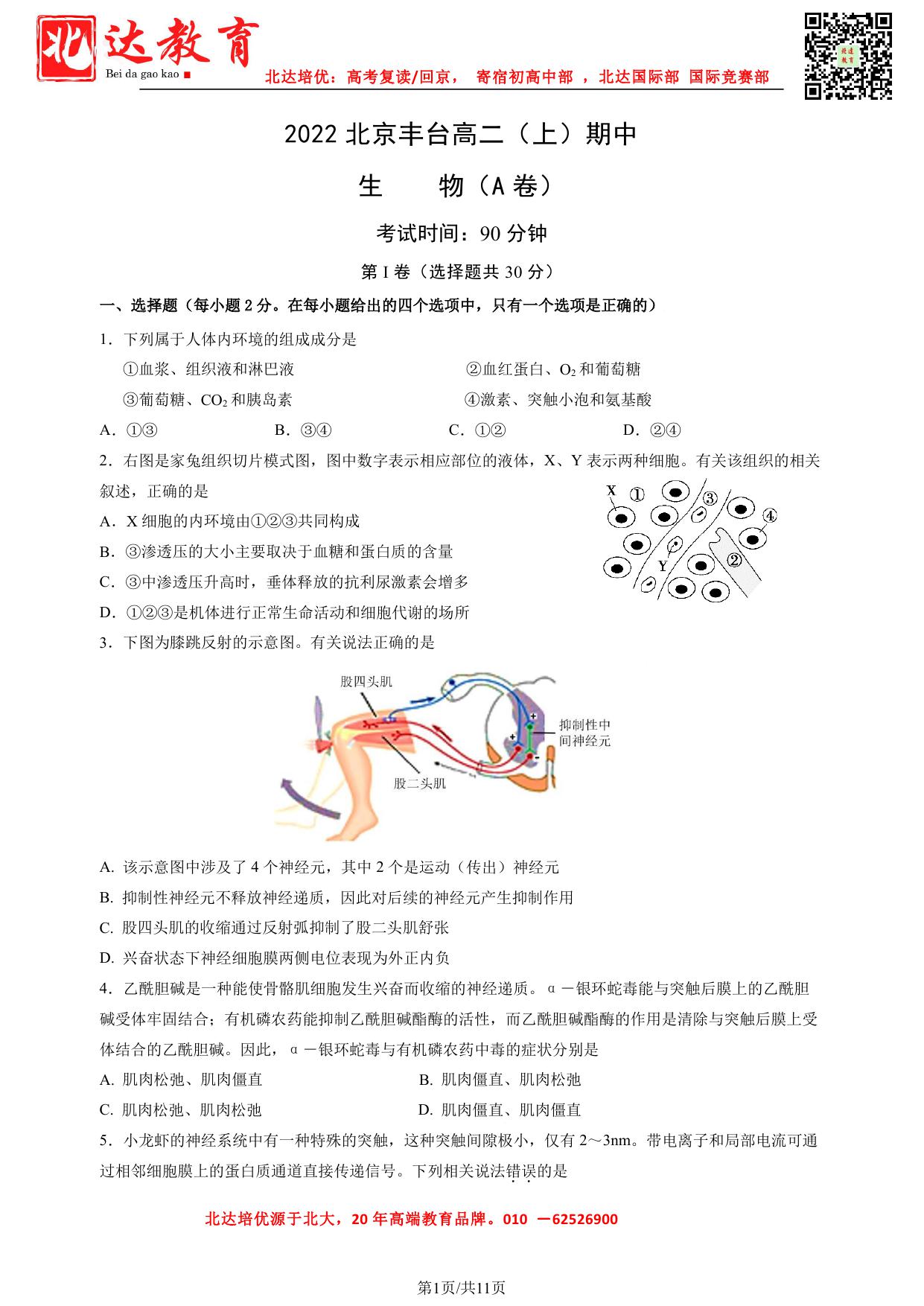 北京admw360教研组收集整理了2022-2023学年北京丰台高二(上)期中生物A试题及答案,一起来看看。