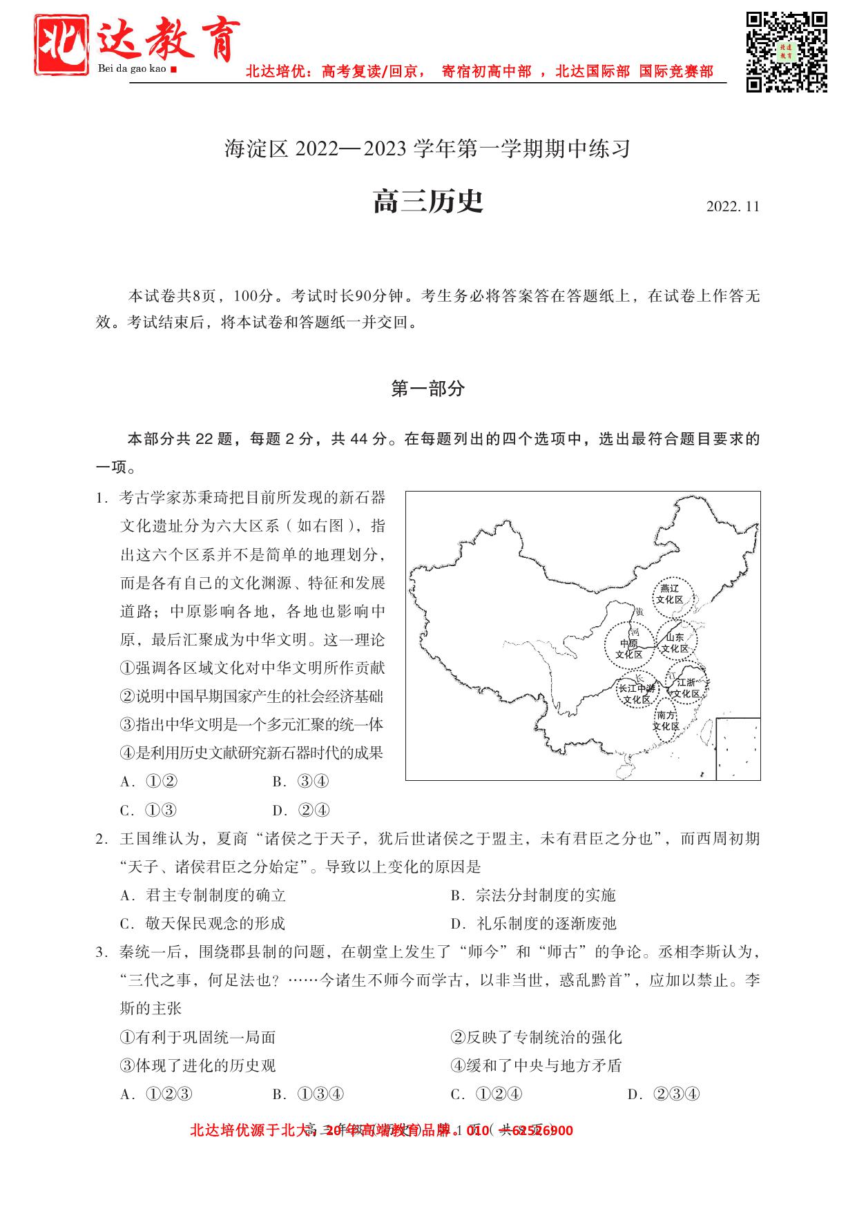 2022-2023学年北京海淀区高三期中考试与11月1日开考,北京admw360教研组收集整理了2022-2023学年北京海淀区高三期中历史试题,一起来看看。