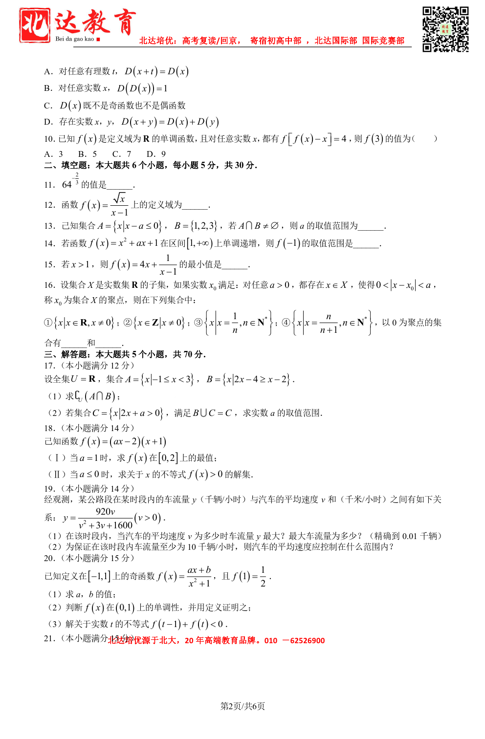 下载链接:北京各区2022-2023学年高一第一学期期中考试试题及答案汇总