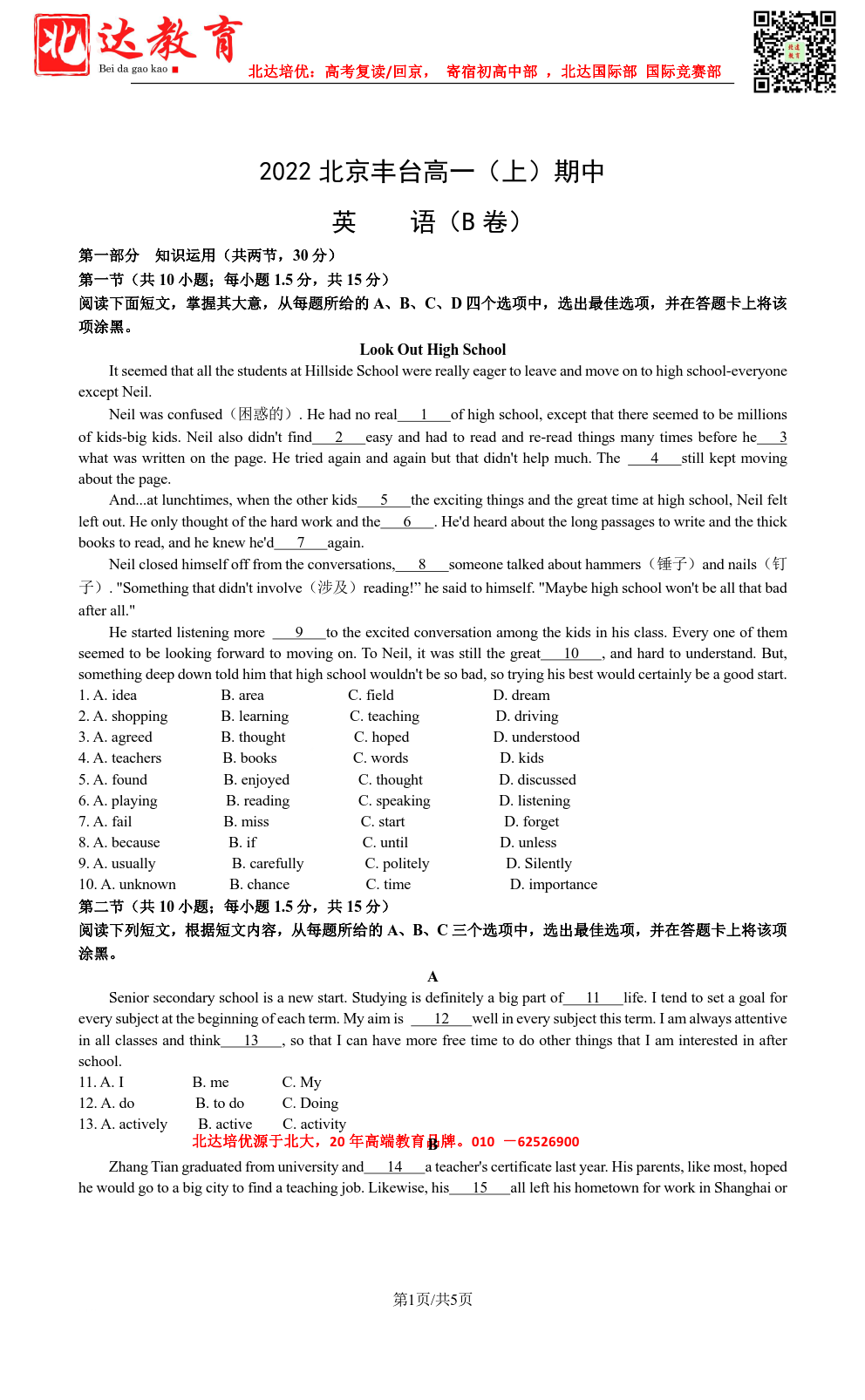 北京admw360教研组为大家整理了2022-2023学年北京丰台区高一(上)期中英语B卷试,分享给大家,赶紧下载练习起来吧。