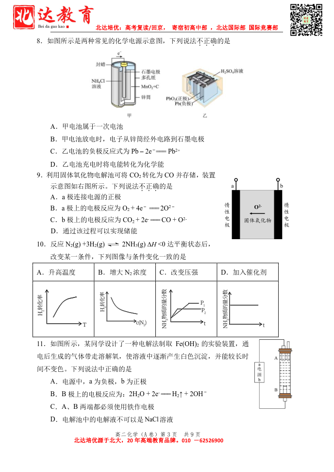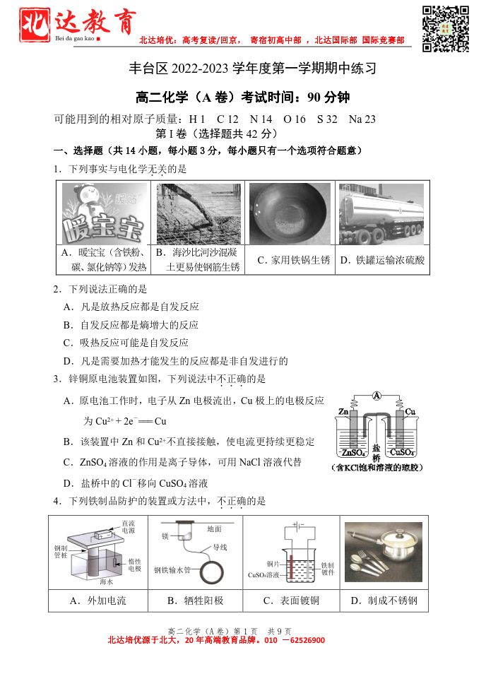 北京admw360教研组为大家整理了2022-2023学年丰台区高二(上)化学( A)期中试题及答案,分享给大家,赶紧下载练习起来吧。