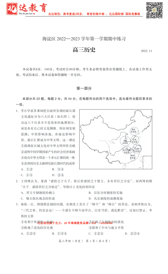 北京admw360教研组为大家整理了2022-2023学年北京海淀区高三(上)历史期中试题及答案,分享给大家,赶紧下载练习起来吧。