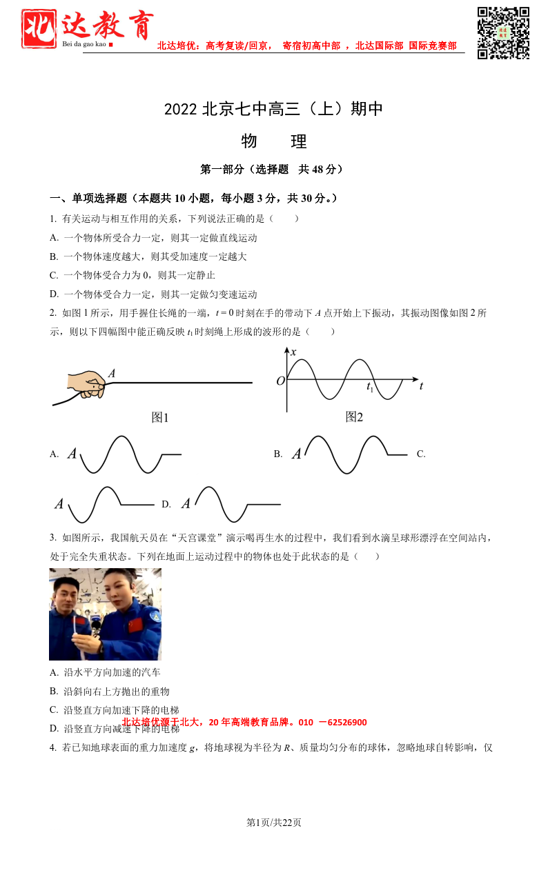 北京admw360教研组为大家整理了2022-2023学年北京七中高三(上)物理期中试题及答案,分享给大家,赶紧下载练习起来吧。