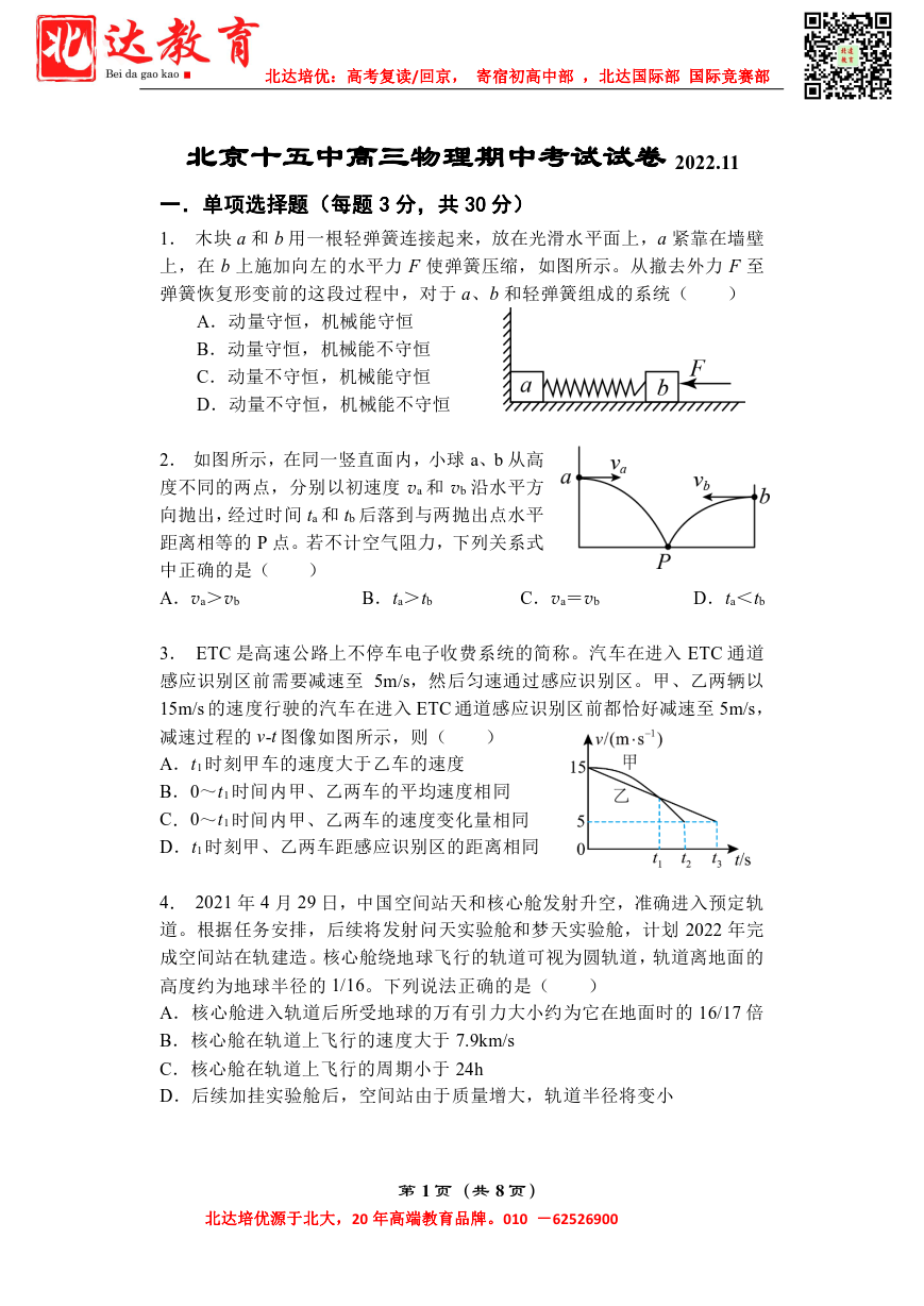 北京admw360教研组为大家整理了2022-2023学年北京十五中高三(上)物理期中试题及答案,分享给大家,赶紧下载练习起来吧。