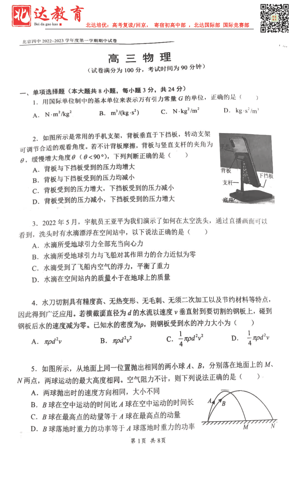 北京admw360教研组为大家整理了2022-2023学年北京四中高三(上)物理期中试题及答案,分享给大家,赶紧下载练习起来吧。