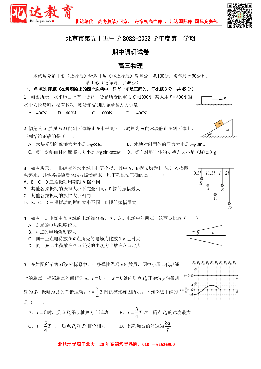 北京admw360教研组为大家整理了2022-2023学年北京五十五中高三(上)物理期中试题,分享给大家,赶紧下载练习起来吧。