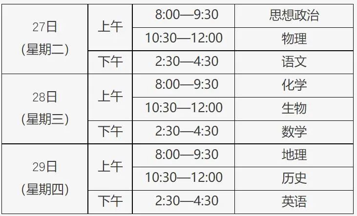 2023年第一次学考合格考定于2022年12月27日至29日进行,考试科目为语文、数学、英语、思想政治、历史、地理、物理、化学、生物。