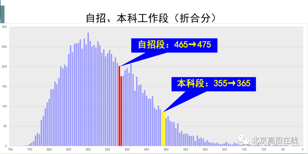 本次海淀高三期中考试划定自招段(一本线)465-475分,本科段355-365分,可以看做一本线470分,本科线360分(2022年北京高招一本线是518分,本科线是425分)。