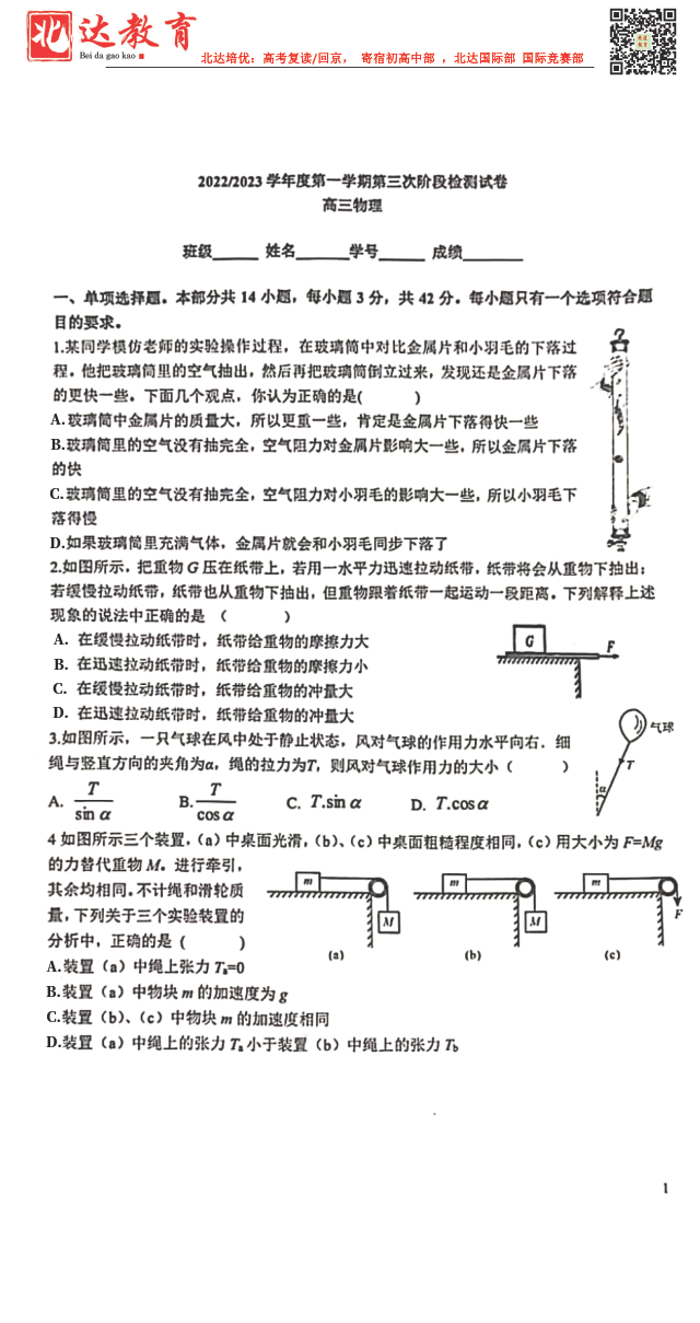 北京admw360教研组为大家整理了2022-2023学年北京五中高三上期中物理试题,分享给大家,赶紧下载练习起来吧。