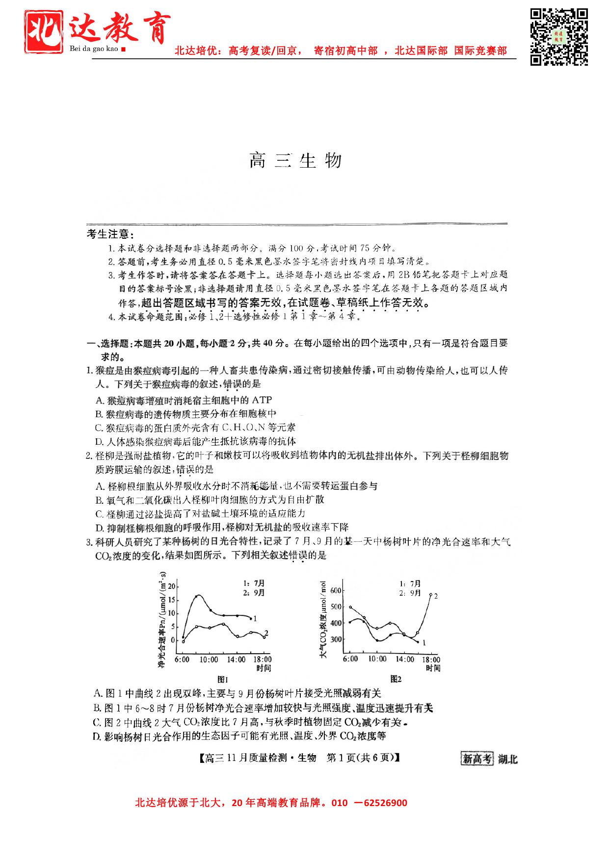 admw360高考网为大家整理了2023湖北九师联盟高三期中联考生物试题及答案。快一起来看看吧!