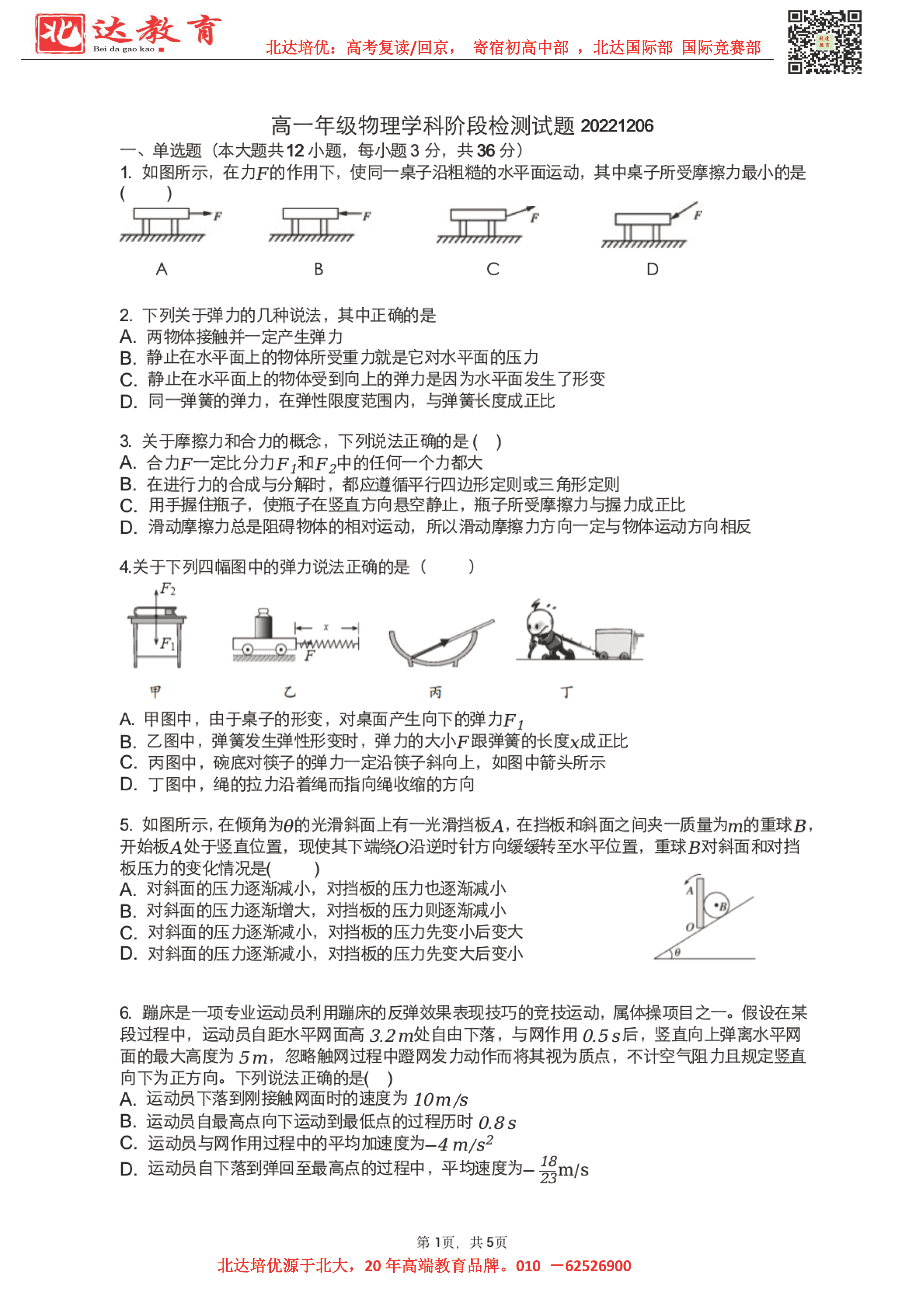 12月开始,北京市各区高中年级将陆续开展12月月考。admw360高考复读学校教研组整理了2022北京五十中高一12月月考物理试题,附电子版可下载!