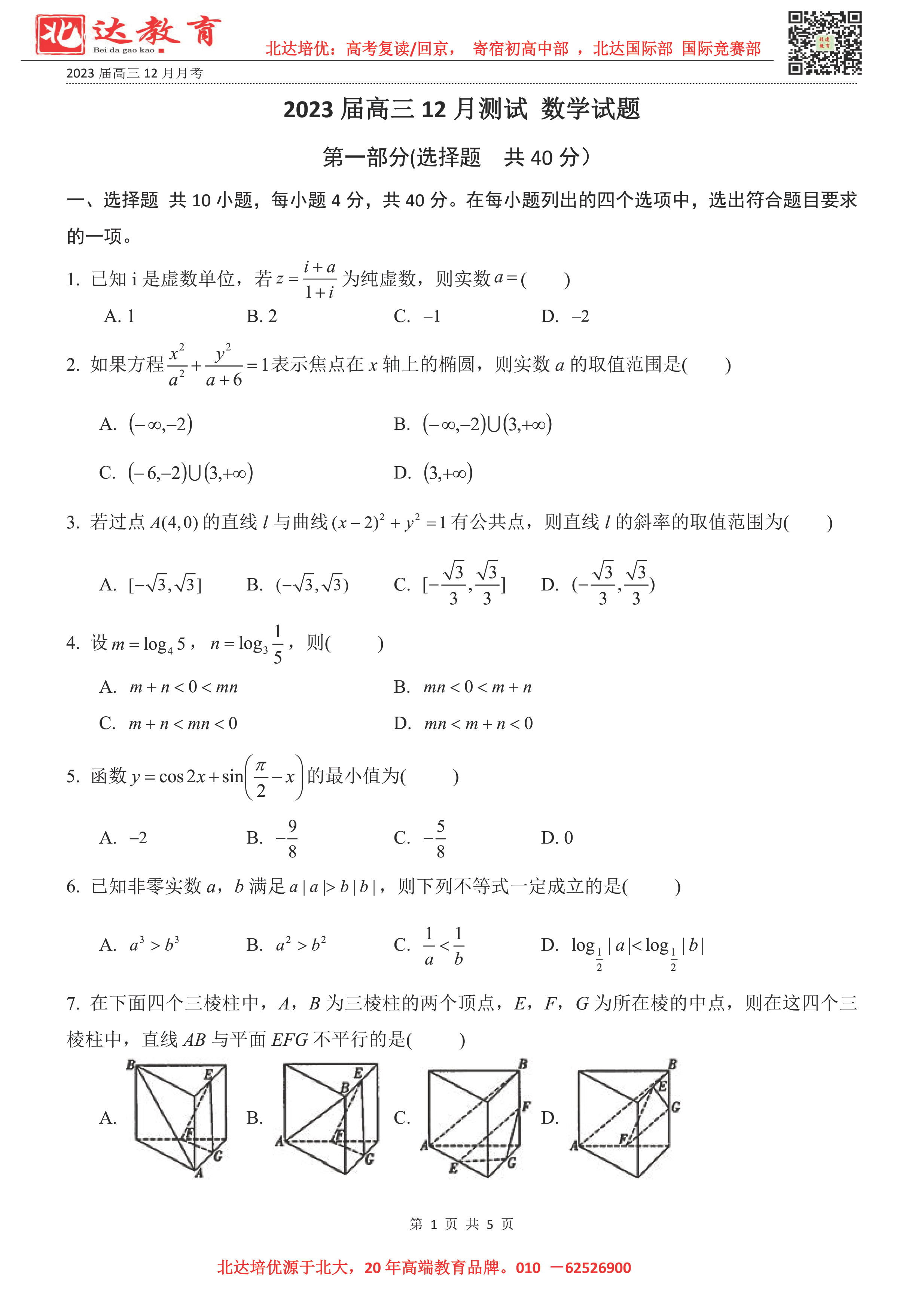 12月开始,北京市各区高中年级将陆续开展12月月考。admw360高考复读学校教研组整理了2023北京八中高三12月月考数学试题及答案,附电子版可下载!