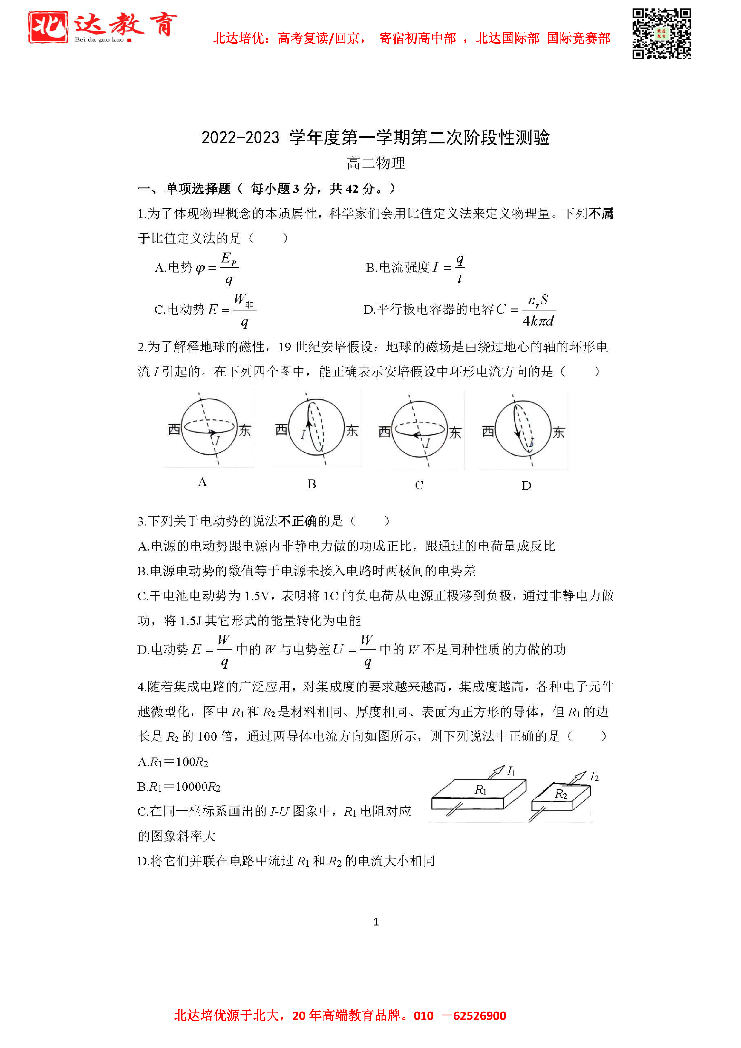 12月开始,北京市各区高中年级将陆续开展12月月考。admw360高考复读学校教研组整理了2022年北京五中高二12月月考物理试题,附电子版可下载!