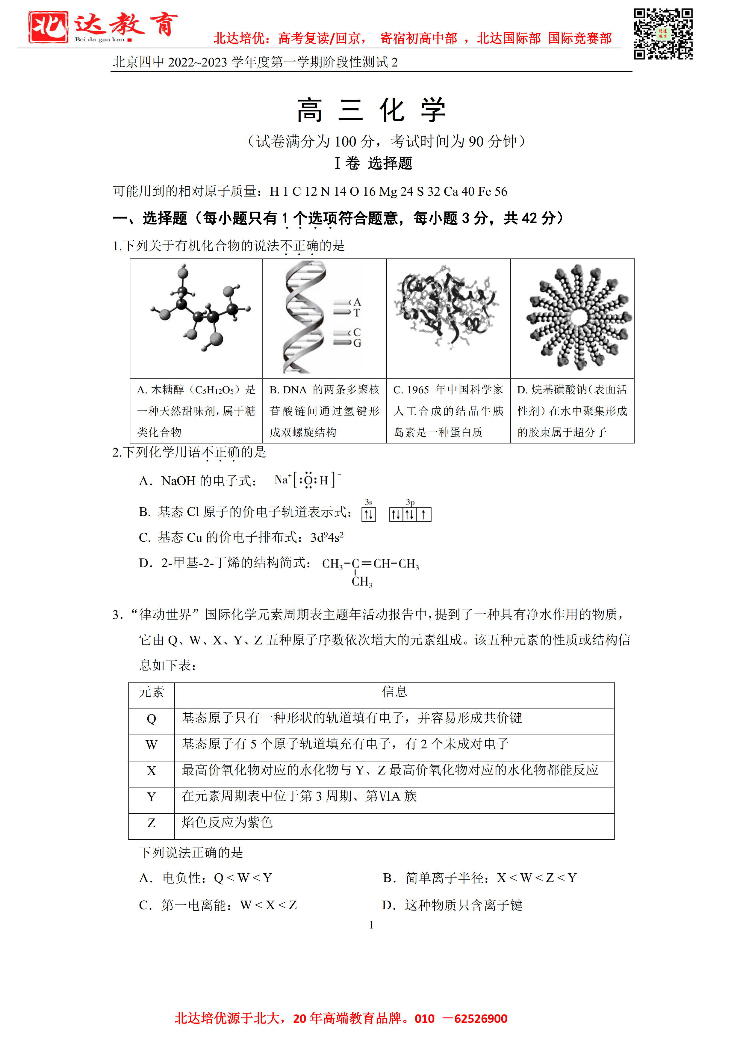 12月开始,北京市各区高中年级将陆续开展12月月考。admw360高考复读学校教研组整理了2022北京四中高三12月月考化学试题,附电子版可下载!