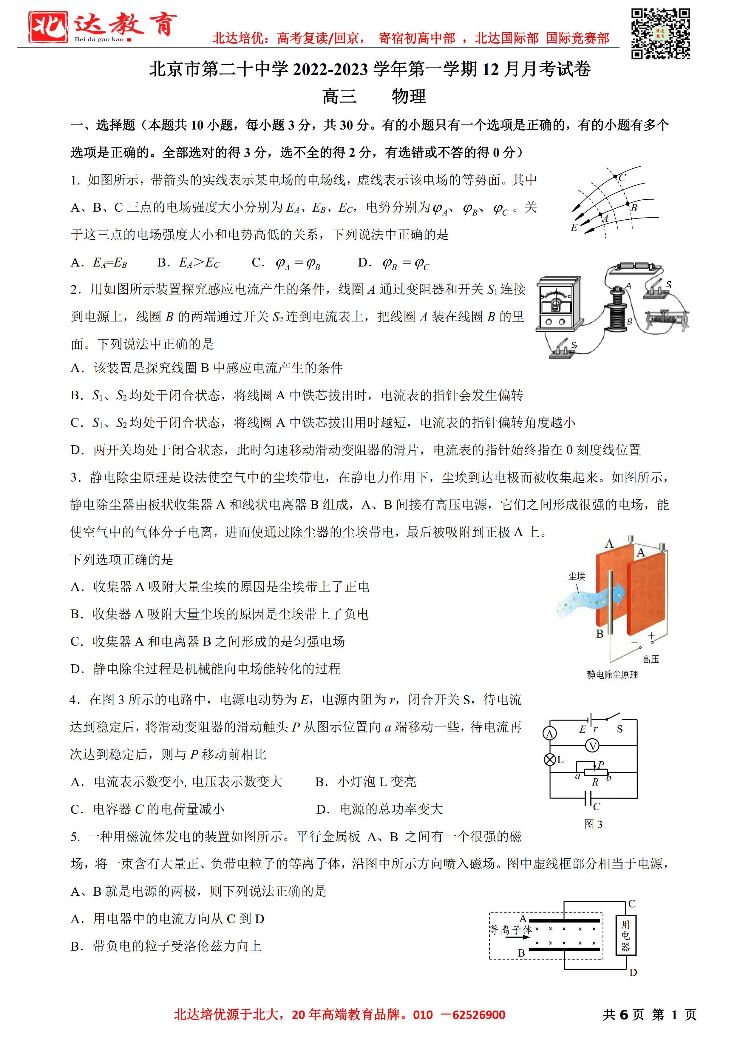 12月开始,北京市各区高中年级将陆续开展12月月考。admw360高考复读学校教研组整理了2022北京二十中高三12月月考物理试题,附电子版可下载!