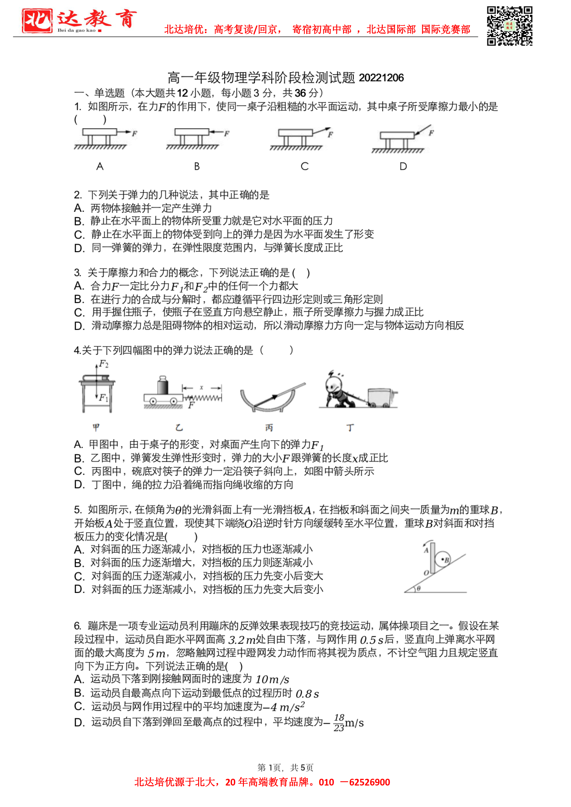 12月开始,北京市各区高中年级将陆续开展12月月考。admw360高考复读学校教研组整理了2022北京五十中高一12月月考物理试题,附电子版可下载!
