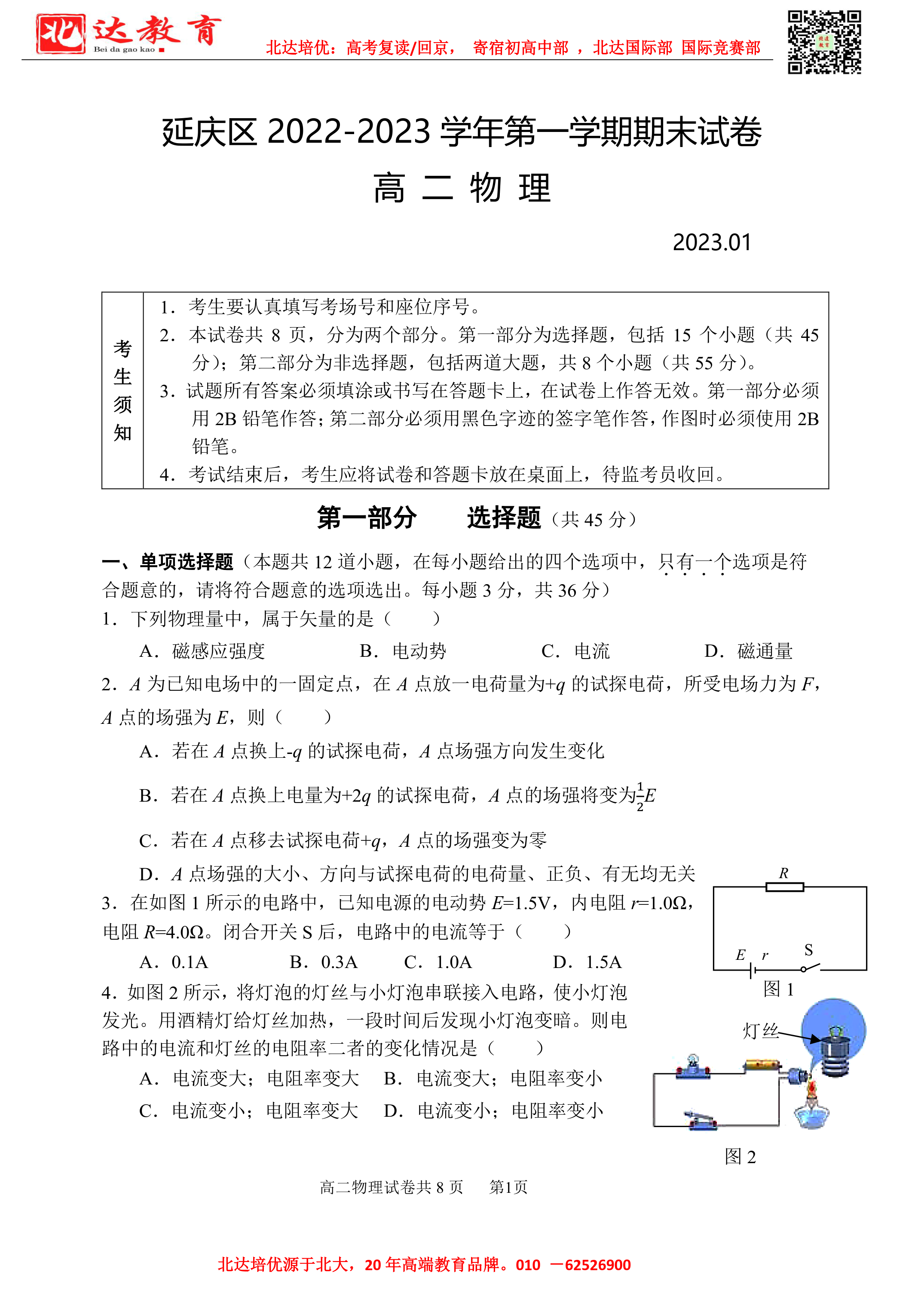 2023北京延庆期末考试已陆续开始,为了方便同学们查找相关试题,admw360高考复读学校整理了延庆区高二上学期期末历史试题及答案,附高清电子版,欢迎为大家下载分享~