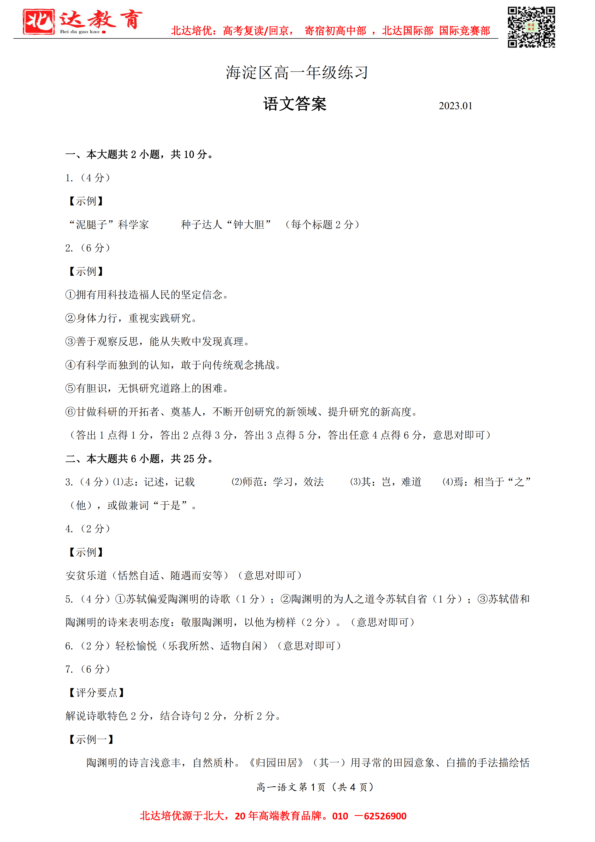 2023年北京海淀区高一上学期期末语文试题及答案,附高清电子版,欢迎为大家下载分享~